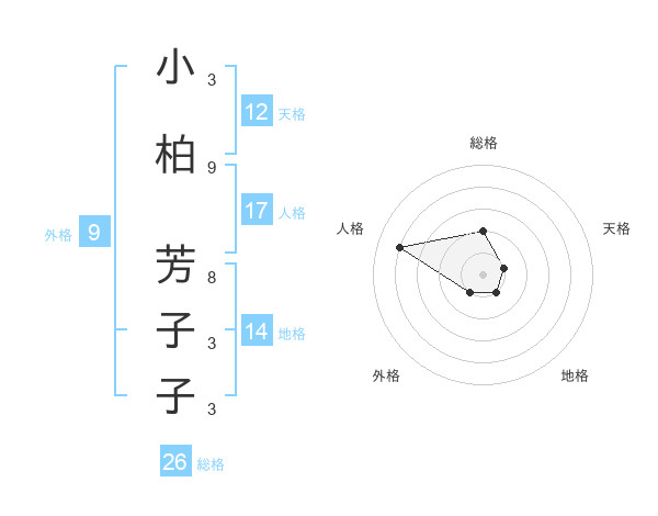 小柏 芳子子さんを姓名の画数から五運を鑑定