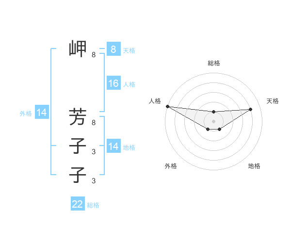 岬 芳子子さんの天格は8画の4点!