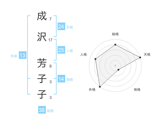 成沢 芳子子さんを姓名の画数から五運を鑑定