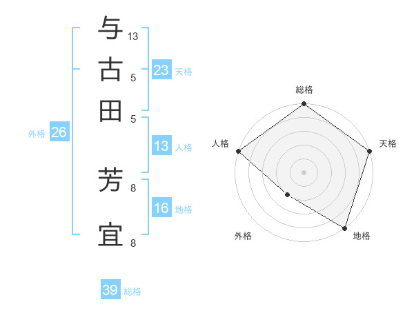 与古田 芳宜さんを姓名の画数から五運を鑑定