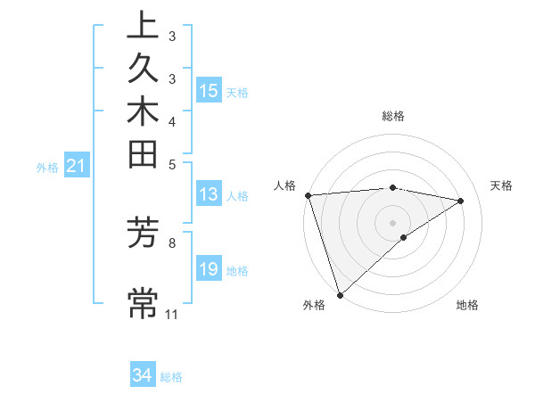 上久木田 芳常さんを姓名の画数から五運を鑑定