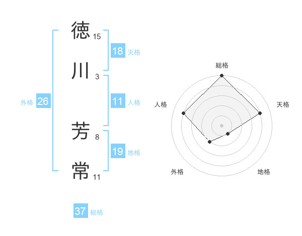 徳川 芳常さんを姓名の画数から五運を鑑定