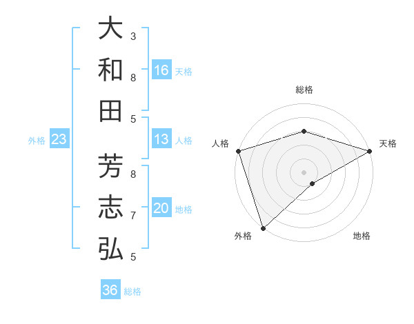 大和田 芳志弘さんを姓名の画数から五運を鑑定