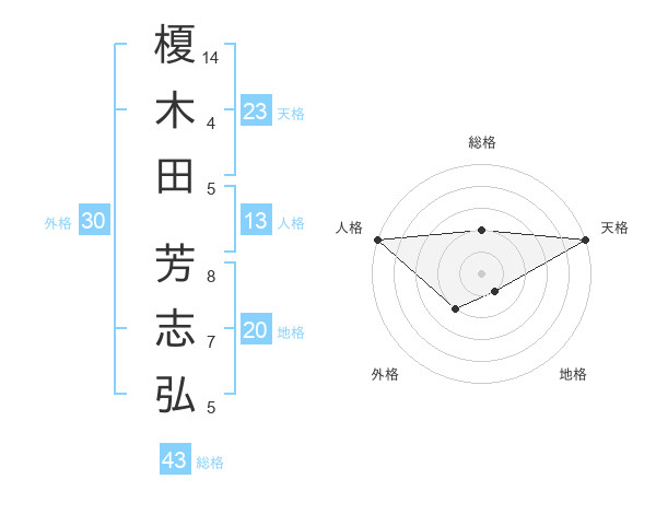 榎木田 芳志弘さんの天格は23画の5点!