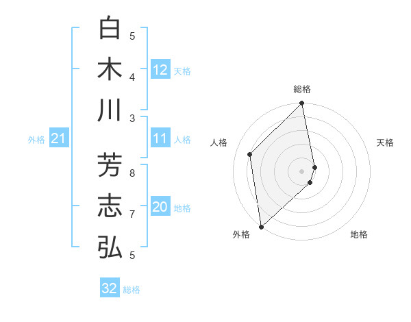 白木川 芳志弘さんの総格は32画の5点