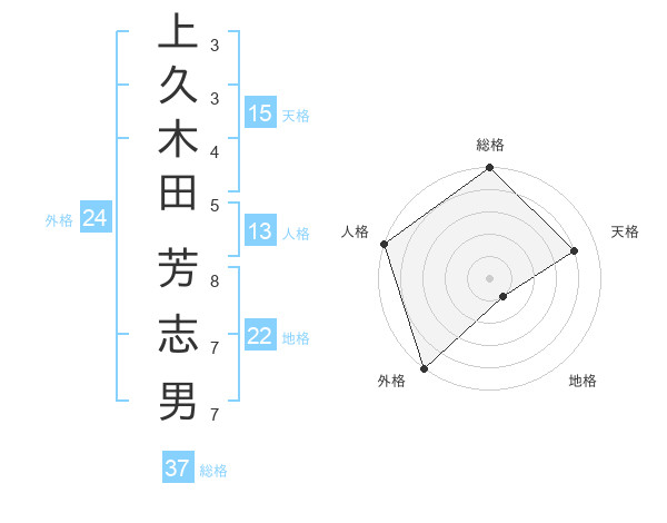 上久木田 芳志男さんを姓名の画数から五運を鑑定