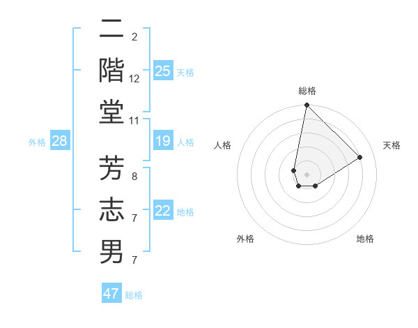 二階堂 芳志男さんを姓名の画数から五運を鑑定