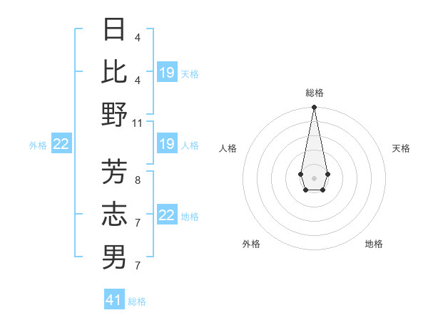 日比野 芳志男さんを姓名の画数から五運を鑑定