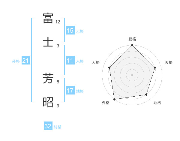 富士 芳昭さんを姓名の画数から五運を鑑定