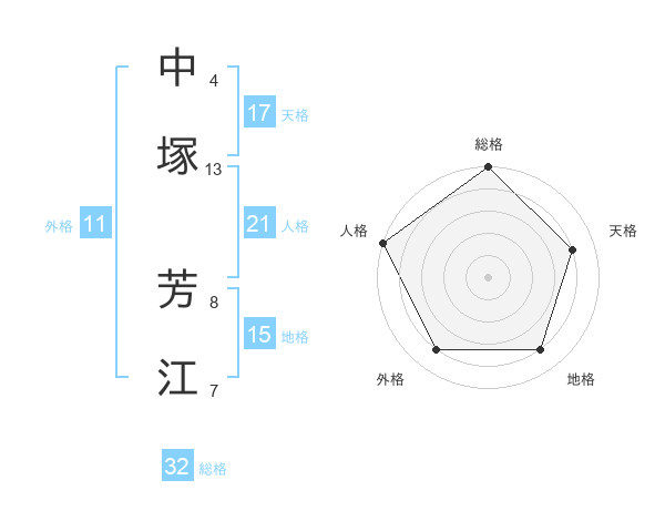 中塚 芳江さんを姓名の画数から五運を鑑定