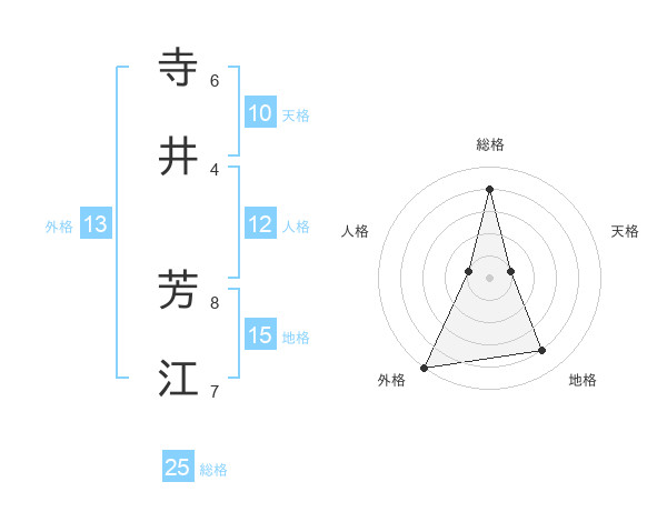 寺井 芳江さんの総格は25画の4点!