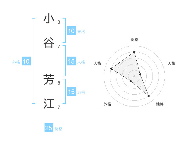 小谷 芳江さんの総格は25画の4点!