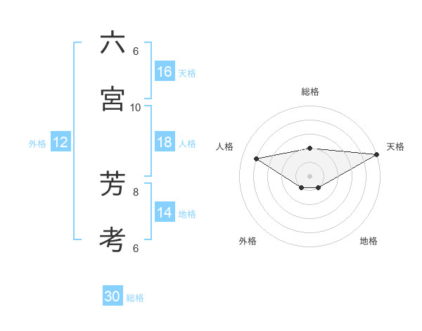 六宮 芳考さんを姓名の画数から五運を鑑定