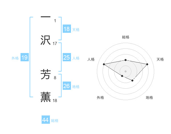 一沢 芳薫さんの総格は44画の2点!
