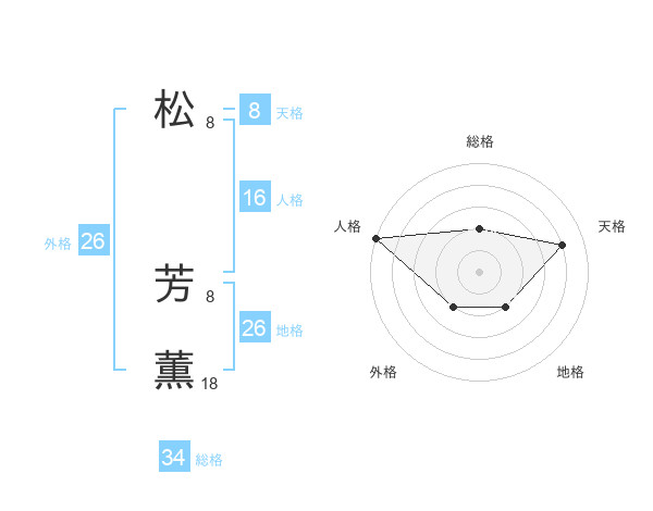 松 芳薫さんの総格は34画の2点!