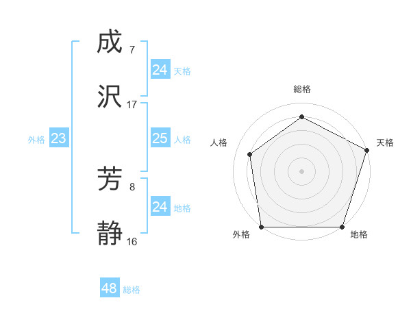 成沢 芳静さんを姓名の画数から五運を鑑定