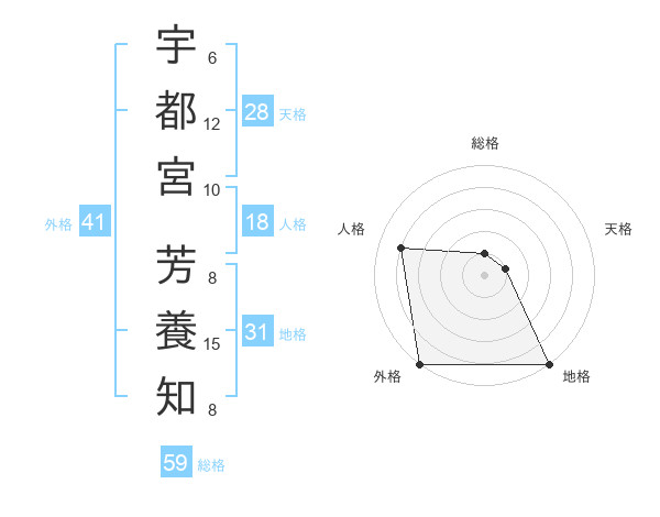 宇都宮 芳養知さんの外格は41画の5点!