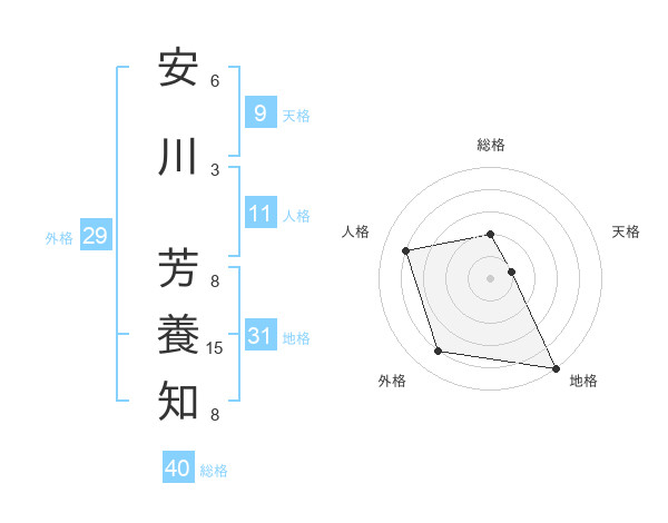安川 芳養知さんを姓名の画数から五運を鑑定