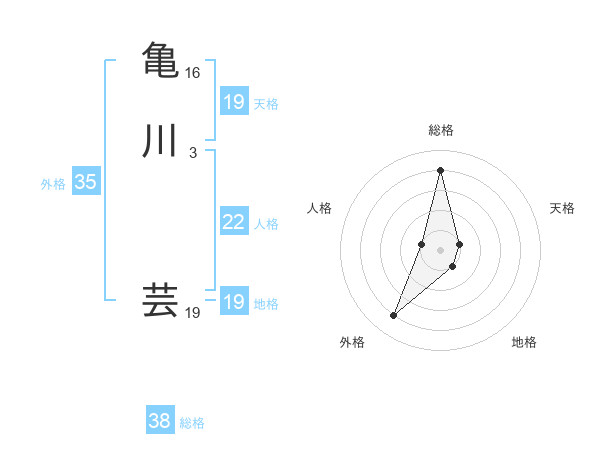 亀川 芸さんの総格は38画の4点!