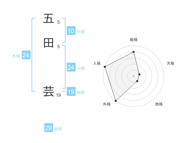 五田 芸さんの総格は29画の4点!