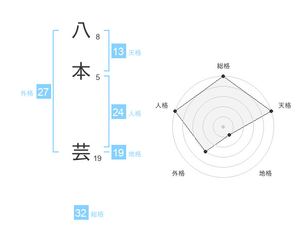 八本 芸さんの総格は32画の5点!