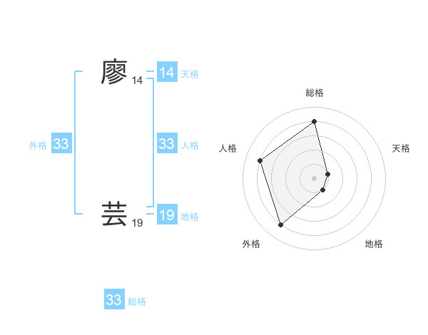 廖 芸さんの総格は33画の4点!