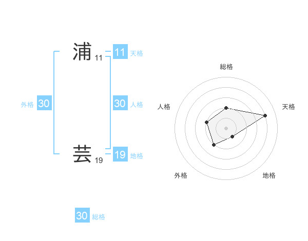 浦 芸さんの総格は30画の2点!