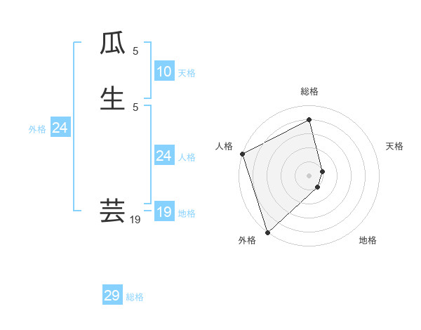 瓜生 芸さんを姓名の画数から五運を鑑定