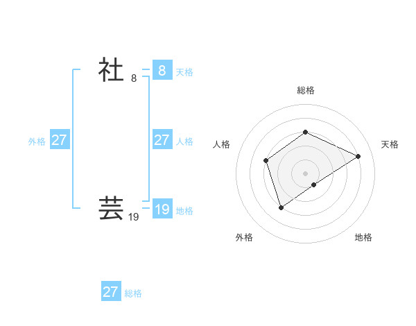 社 芸さんの総格は27画の3点!