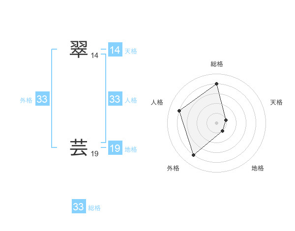 翠 芸さんの外格は33画の4点!