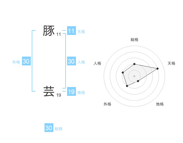 豚 芸さんの総格は30画の2点!