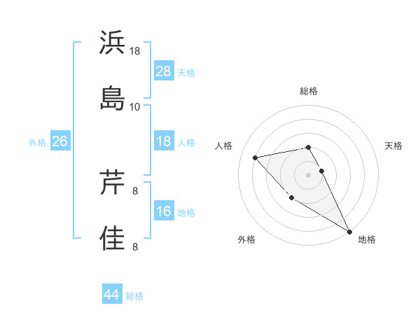 浜島 芹佳さんの総格は44画の2点