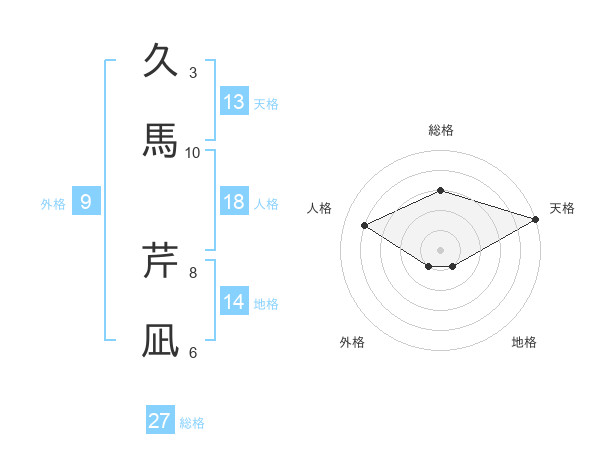 久馬 芹凪さんを姓名の画数から五運を鑑定