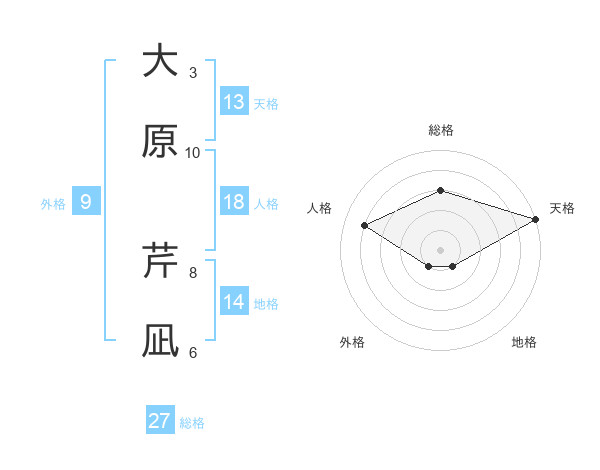 大原 芹凪さんの天格は13画の5点!