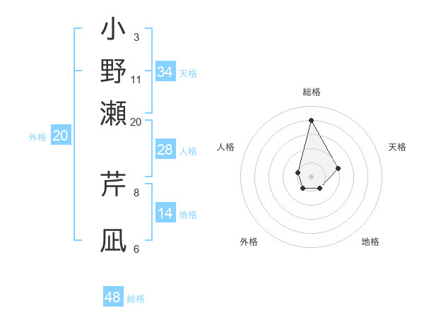 小野瀬 芹凪さんを姓名の画数から五運を鑑定
