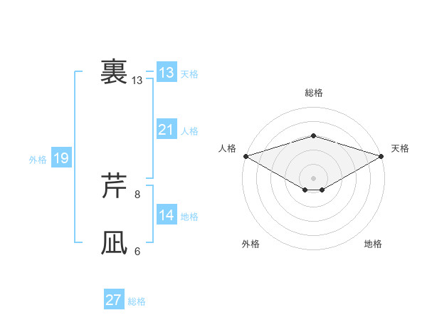 裏 芹凪さんの天格は13画の5点!