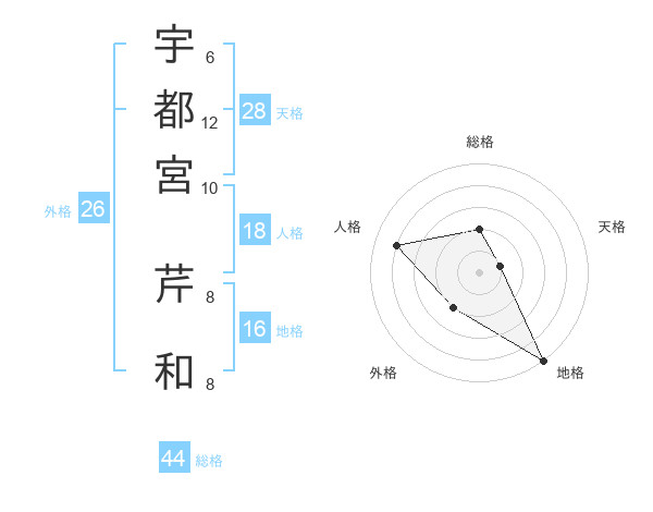 宇都宮 芹和さんを姓名の画数から五運を鑑定