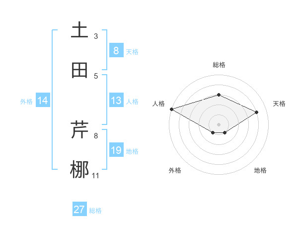 土田 芹梛さんの総格は27画の3点!