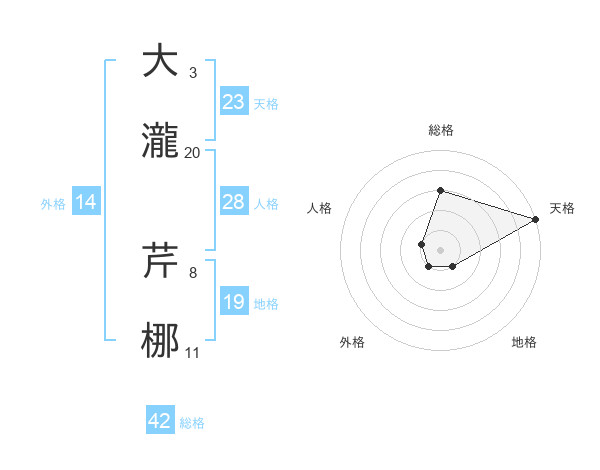 大瀧 芹梛さんの天格は23画の5点!