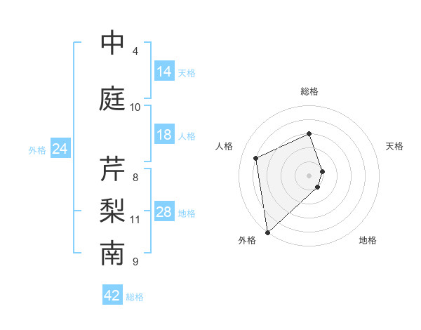中庭 芹梨南さんを姓名の画数から五運を鑑定