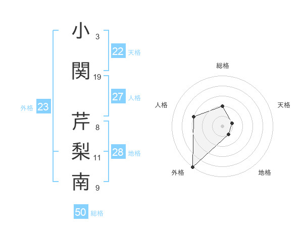 小関 芹梨南さんの外格は23画の5点