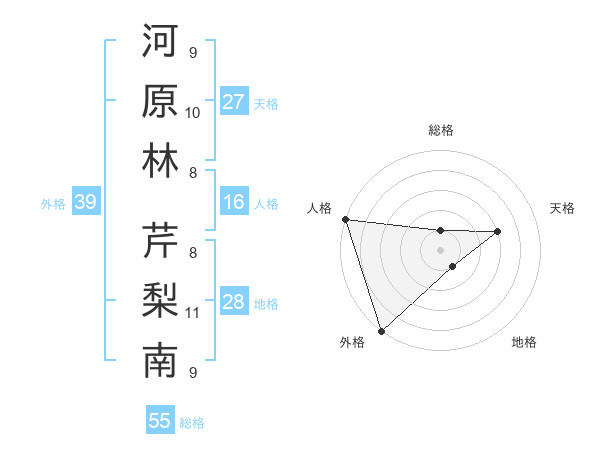 河原林 芹梨南さんの外格は39画の5点!