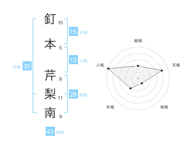 釘本 芹梨南さんを姓名の画数から五運を鑑定
