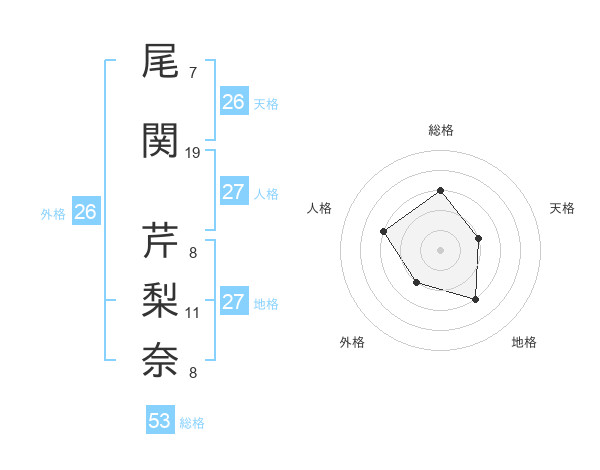 尾関 芹梨奈さんの外格は26画の2点!