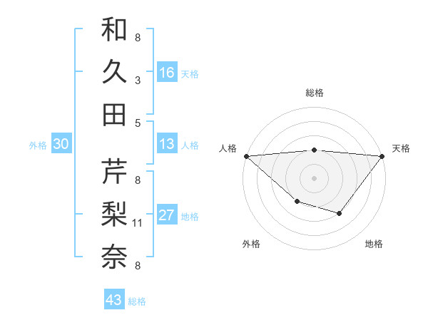 和久田 芹梨奈さんを姓名の画数から五運を鑑定