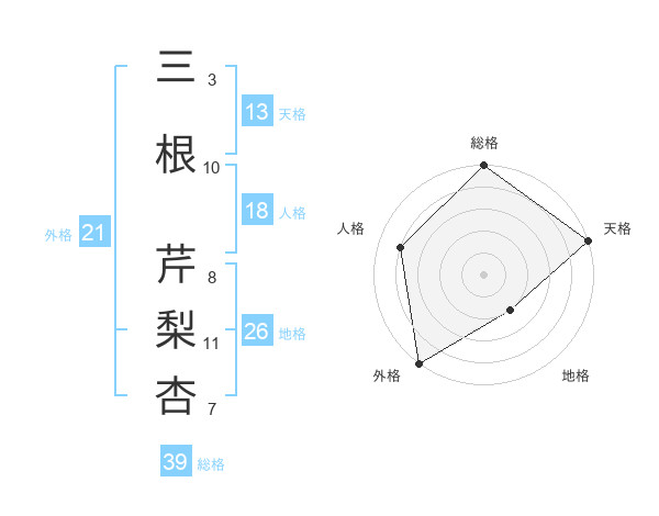 三根 芹梨杏さんを姓名の画数から五運を鑑定