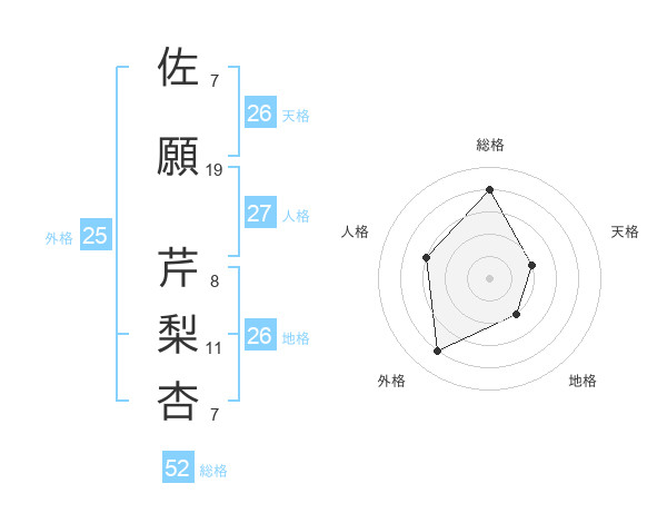 佐願 芹梨杏さんの総格は52画の4点!