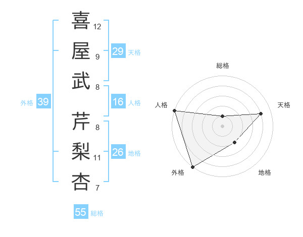 喜屋武 芹梨杏さんの天格は29画の4点!