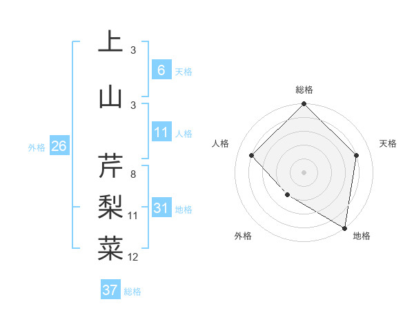 上山 芹梨菜さんを姓名の画数から五運を鑑定