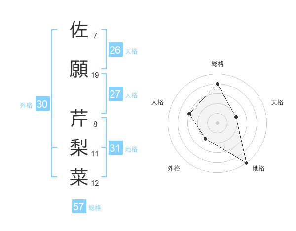佐願 芹梨菜さんの総格は57画の4点!